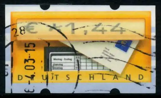 1,44 Euro Wert aus der ATM Ausgabe von 2002, mit Briefkastenlogo, Werteindruck 28mm lang