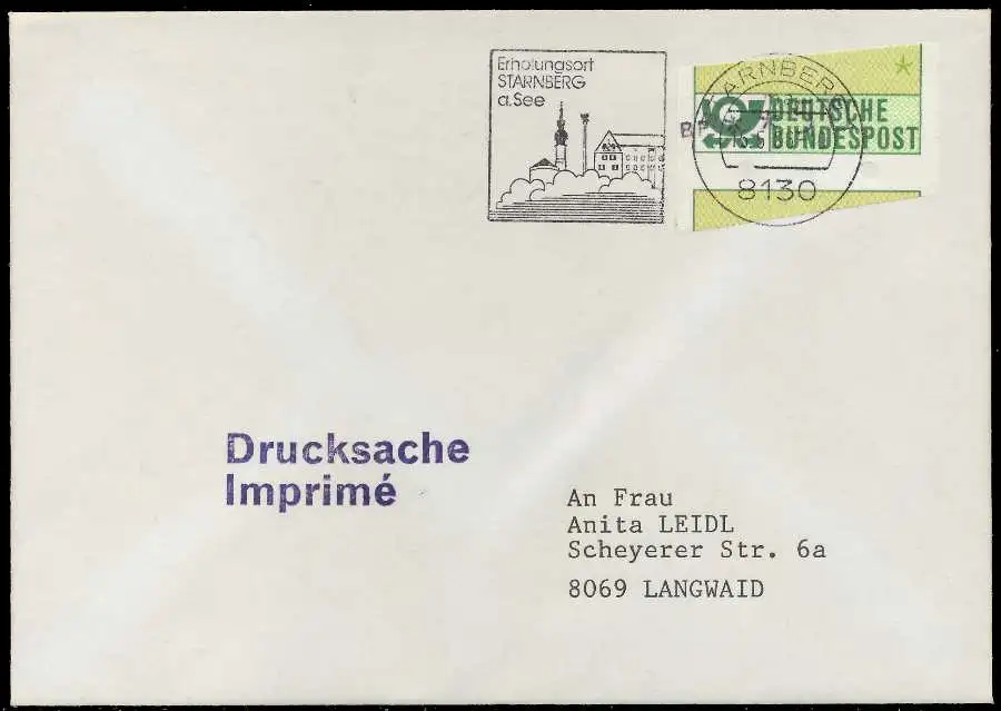 Drucksache mit ATM1-050, sogenannter "Starnberger Reiter bzw. Starnberger Springer", beiliegend die Quittung des Automaten mit Datum 15.05.1986