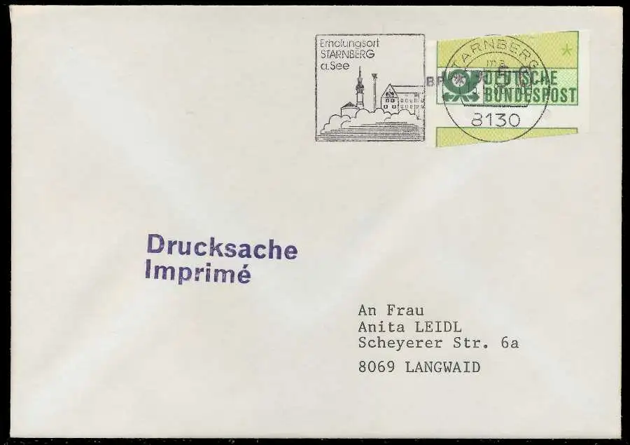 Drucksache mit ATM1-050, sogenannter "Starnberger Reiter bzw. Starnberger Springer", beiliegend die Quittung des Automaten mit Datum 15.05.1986