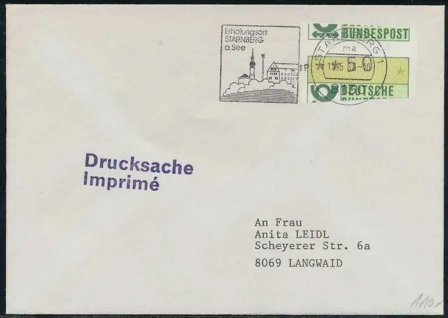 Drucksache mit ATM1-050, sogenannter "Starnberger Reiter bzw. Starnberger Springer", beiliegend die Quittung des Automaten mit Datum 15.05.1986