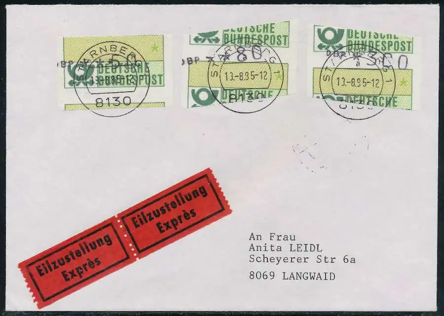 Eilbrief mit ATM1-300 und 080 und 050, sogenannter "Starnberger Reiter bzw. Starnberger Springer"