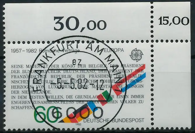 60 Pfg Wert aus der Ausgabe EUROPA 1982, mit korrigiertem Bogenwertzähler
