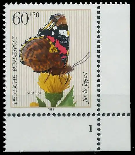 60 + 30 Pfg Wert aus der Ausgabe Jugend 1984 - Insekten - Admiral - Schmetterling