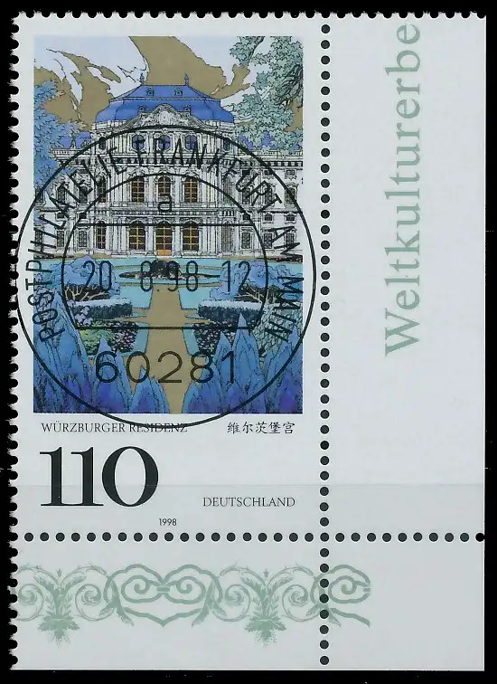 BRD BUND 1998 Nr 2007 zentrisch gestempelt ECKE-URE 552CB2