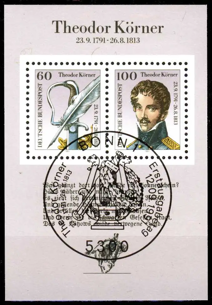 Blockausgabe 200. Geburtstag von Theodor Körner