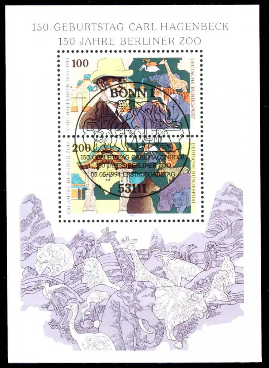Blockausgabe 150. Geburtstag von Carl Hagenbeck