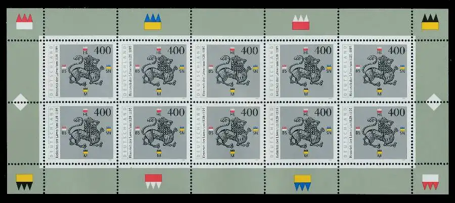 800. Todestag von Heinrich dem Löwen, auf einer Marke leichte Papierknitter