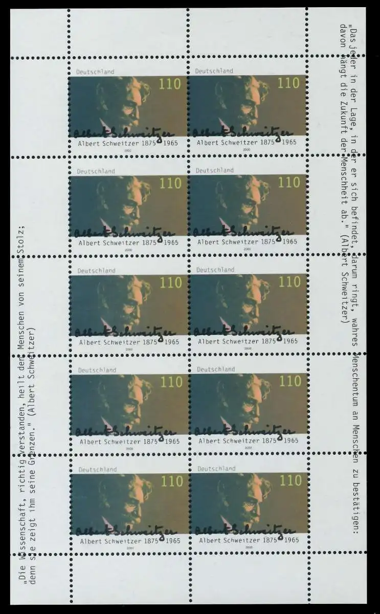 125. Geburtstag von Albert Schweitzer, leichte Fingerspur im Bogenrand