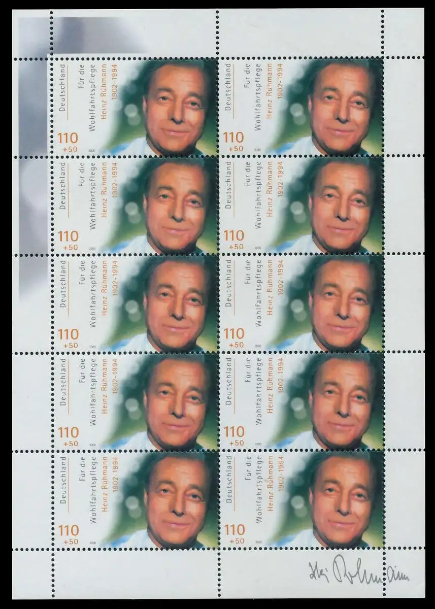 110 + 50 Pfg Wert aus der Ausgabe Wohlfahrt 2000 - Filmschauspieler, leichte Fingerspur auf einer Marke, kleiner Bug in einer Bogenecke