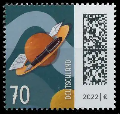 0,70 Euro aus der Ausgabe Welt der Briefe, Bogenmarke, Hintergrund der Wertziffer gräulichgrün
