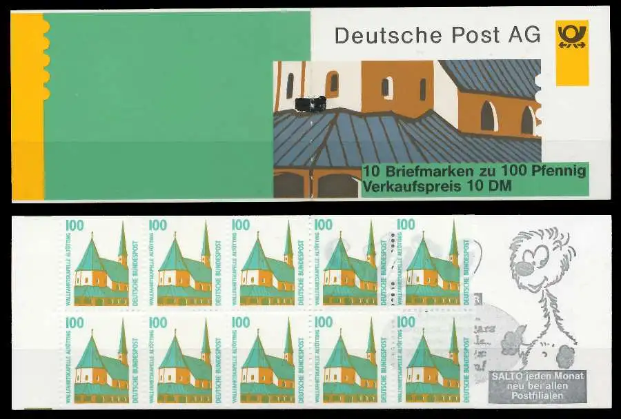 Markenheftchen Nr. 32 Sehenswürdigkeiten, Ausgabe Wallfahrtskapelle Altötting (Michel Nr. 1406C/D) mit schwarzem Zählbalken