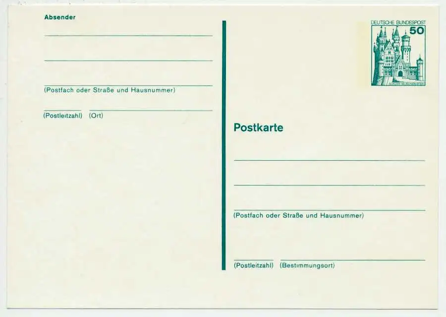 Postkarte P129?? 50 Pfg Burgen und Schlösser blaugrün