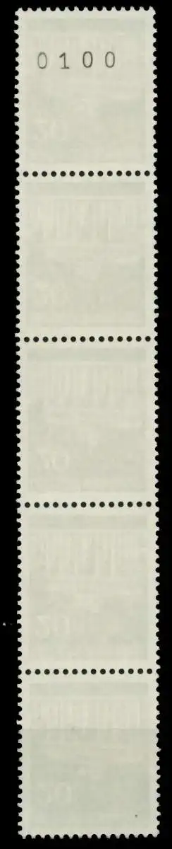 020 Pfg Wert aus der Ausgabe Brandenburger Tor im 5er Streifen, davon 1 Wert mit rückseitiger Nummer