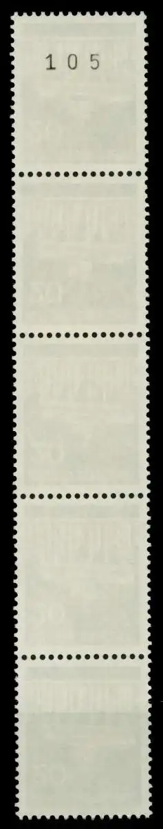 020 Pfg Wert aus der Ausgabe Brandenburger Tor im 5er Streifen, davon 1 Wert mit rückseitiger Nummer