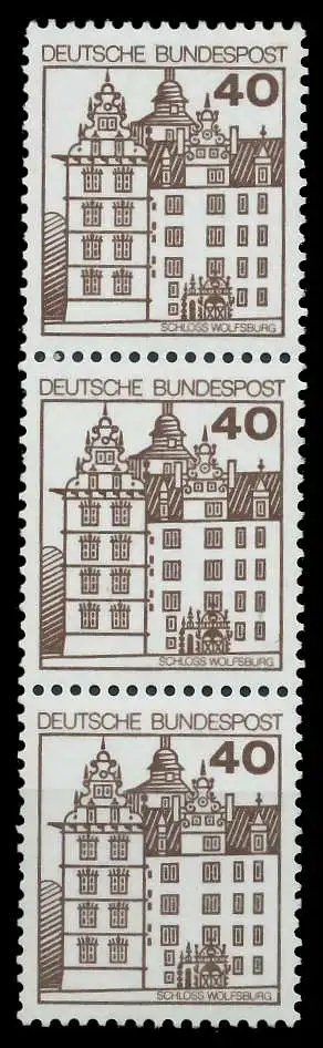 040 Pfg Wert aus der Ausgabe Burgen und Schlösser, 3er Streifen, mit rückseitiger Nummer 220
