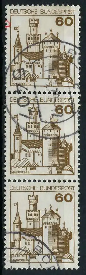 060 Pfg Wert aus der Ausgabe Burgen und Schlösser, 3er Streifen