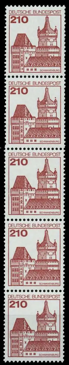 210 Pfg Wert aus der Ausgabe Burgen und Schlösser, 5er Streifen, mit Nummer 020