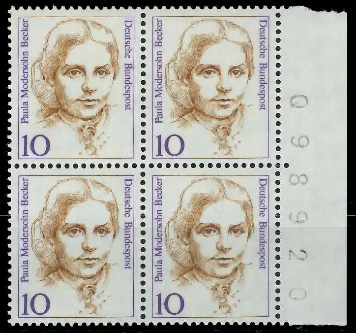 010 Pfg Wert aus der Ausgabe Frauen der deutschen Geschichte, Seitenrand mit Bogennummer