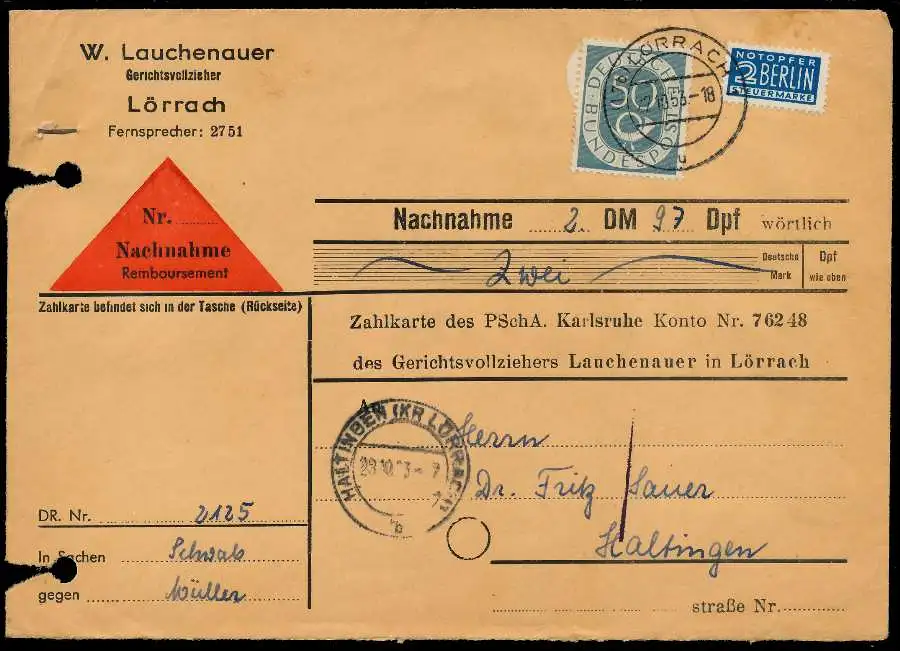 BRD DS POSTHORN Nr 134 BRIEF EF 79024E