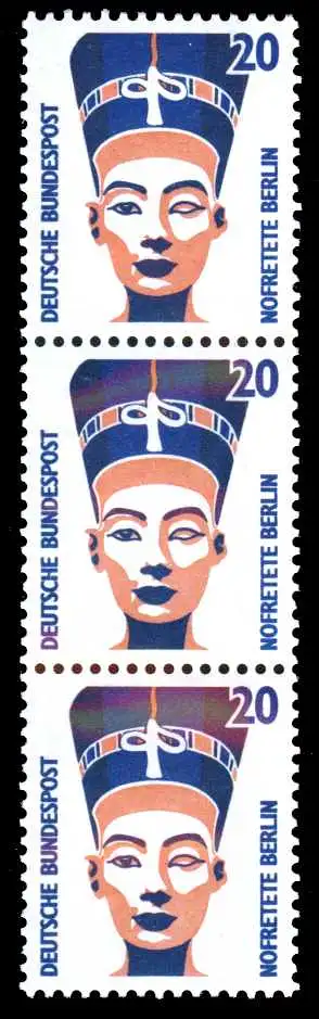 020 Pfg Wert aus der Ausgabe Sehenswürdigkeiten, 3er Streifen, eine Marke mit rückseitiger Nummer 170