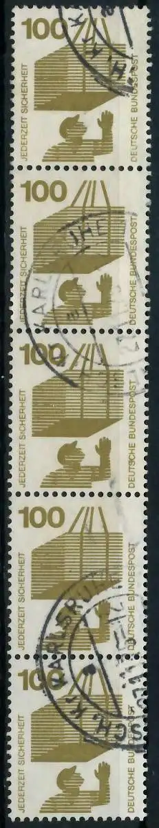 100 Pfg Wert aus der Ausgabe Unfallverhütung, im 5er Streifen