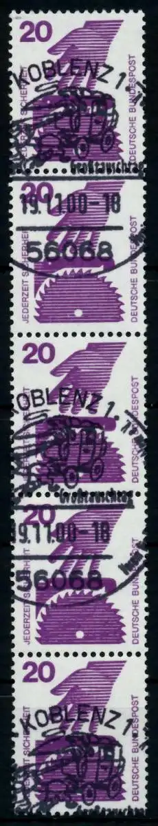 020 Pfg Wert aus der Ausgabe Unfallverhütung, im 5er Streifen mit rückseitiger Nummer 235