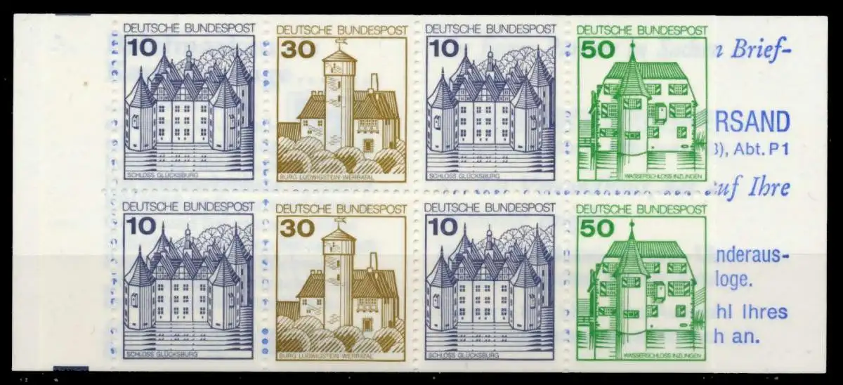 Markenheftchen Nr. 22a, Deckeltype f, Burgen und Schlösser 10 + 30 + 10 + 50