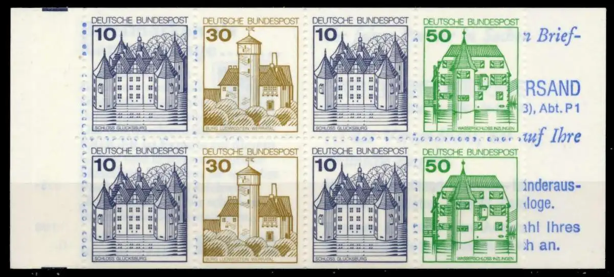 Markenheftchen Nr. 22a, Deckeltype f, Burgen und Schlösser 10 + 30 + 10 + 50