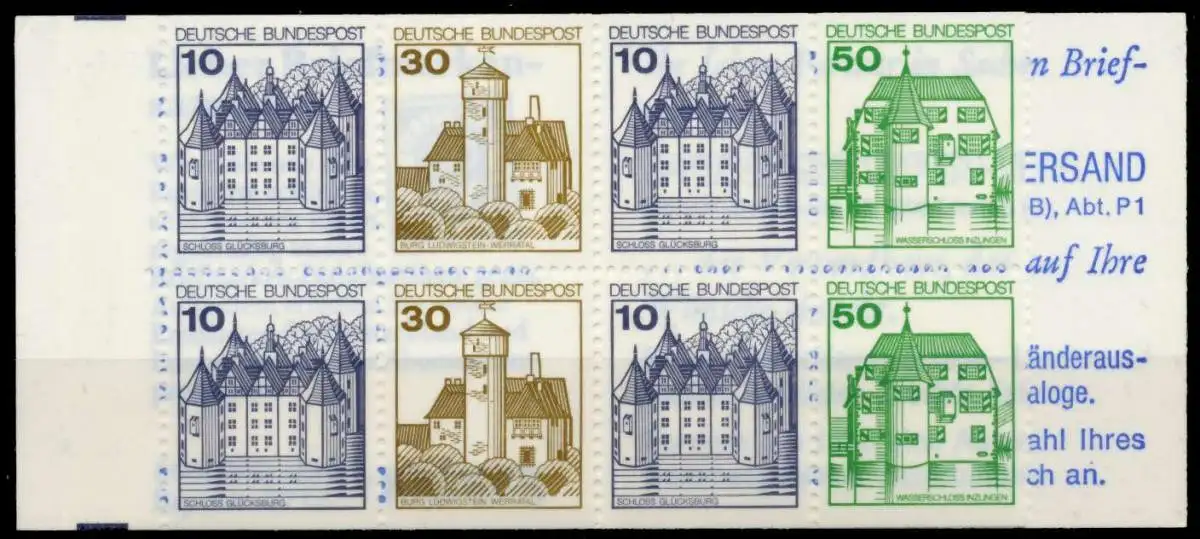 Markenheftchen Nr. 22b, Deckeltype f, Burgen und Schlösser 10 + 30 + 10 + 50