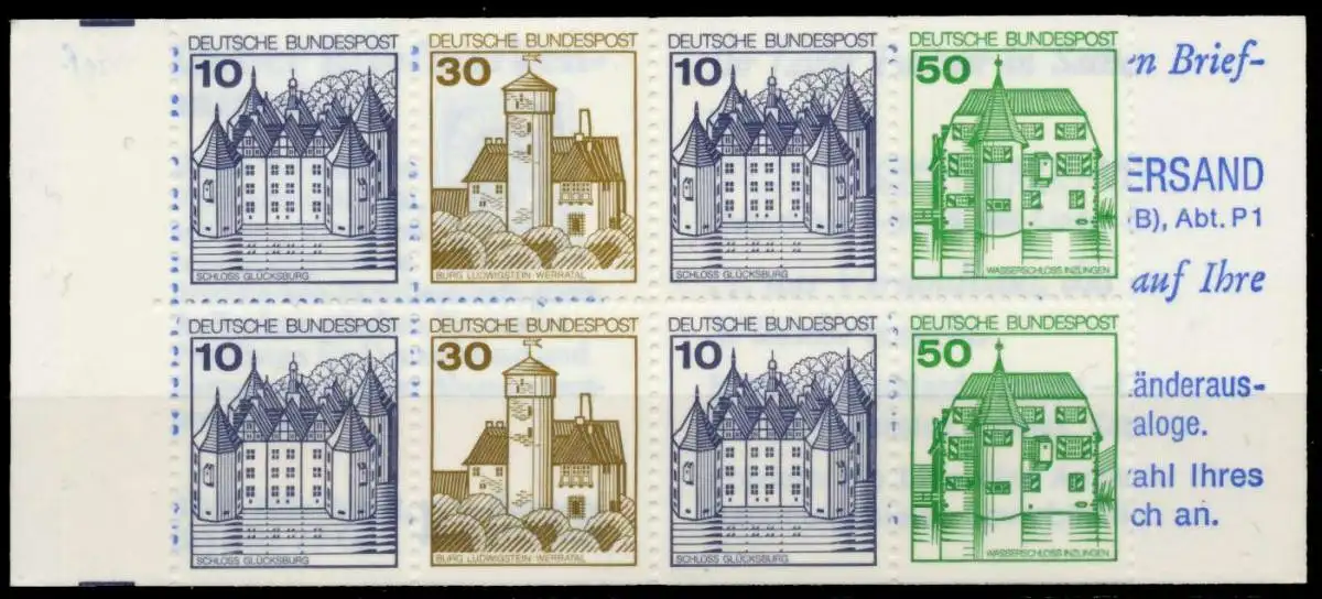 Markenheftchen Nr. 22b, Deckeltype f, Burgen und Schlösser 10 + 30 + 10 + 50