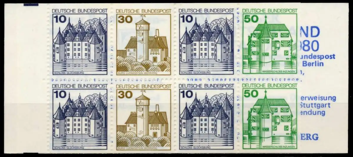 Markenheftchen Nr. 22I, Deckeltype f, Burgen und Schlösser 10 + 30 + 10 + 50
