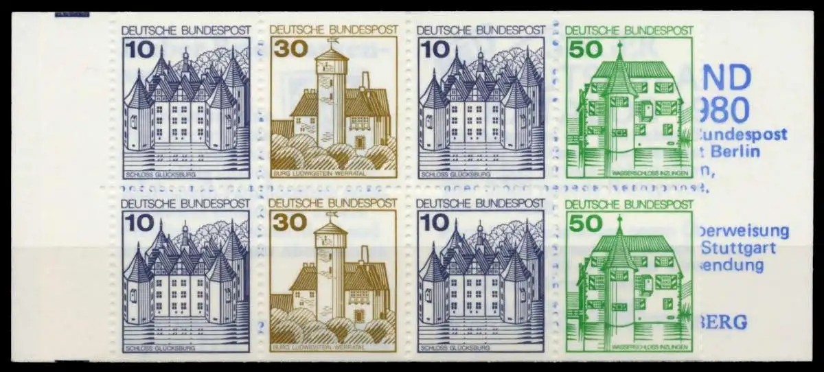 Markenheftchen Nr. 22I, Deckeltype f, Burgen und Schlösser 10 + 30 + 10 + 50