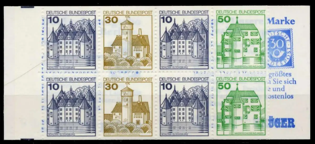 Markenheftchen Nr. 22f, Burgen und Schlösser 10 + 30 + 10 + 50