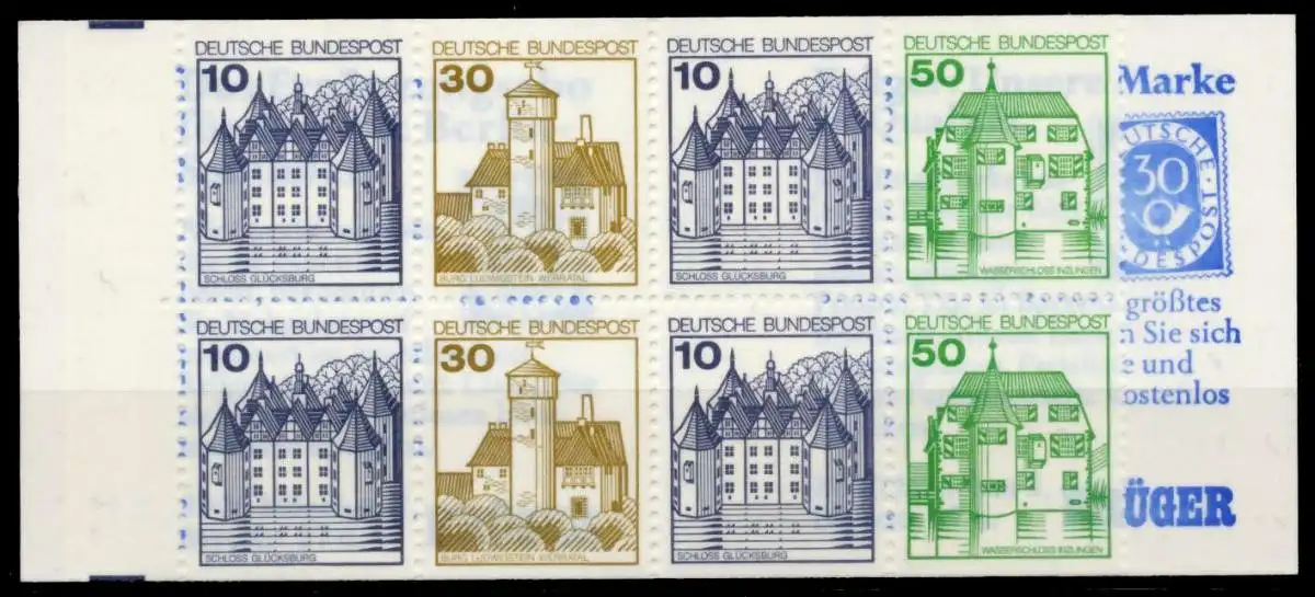 Markenheftchen Nr. 22f, Burgen und Schlösser 10 + 30 + 10 + 50