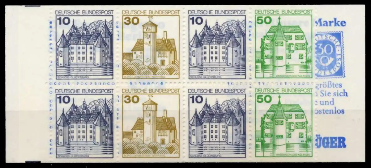 Markenheftchen Nr. 22f, Burgen und Schlösser 10 + 30 + 10 + 50