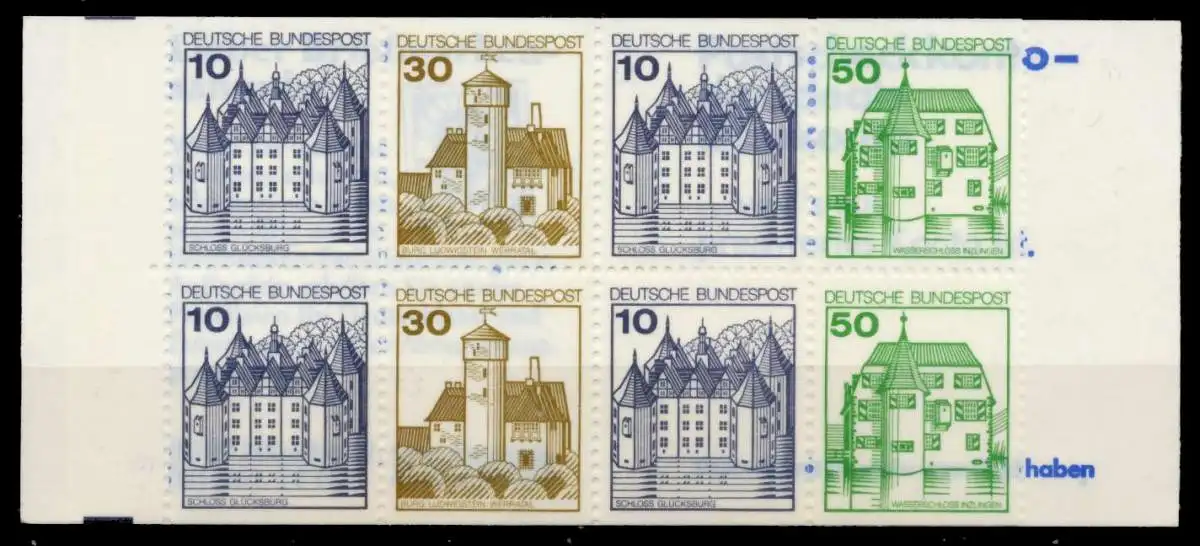 Markenheftchen Nr. 22I, Deckeltype f, Burgen und Schlösser 10 + 30 + 10 + 50