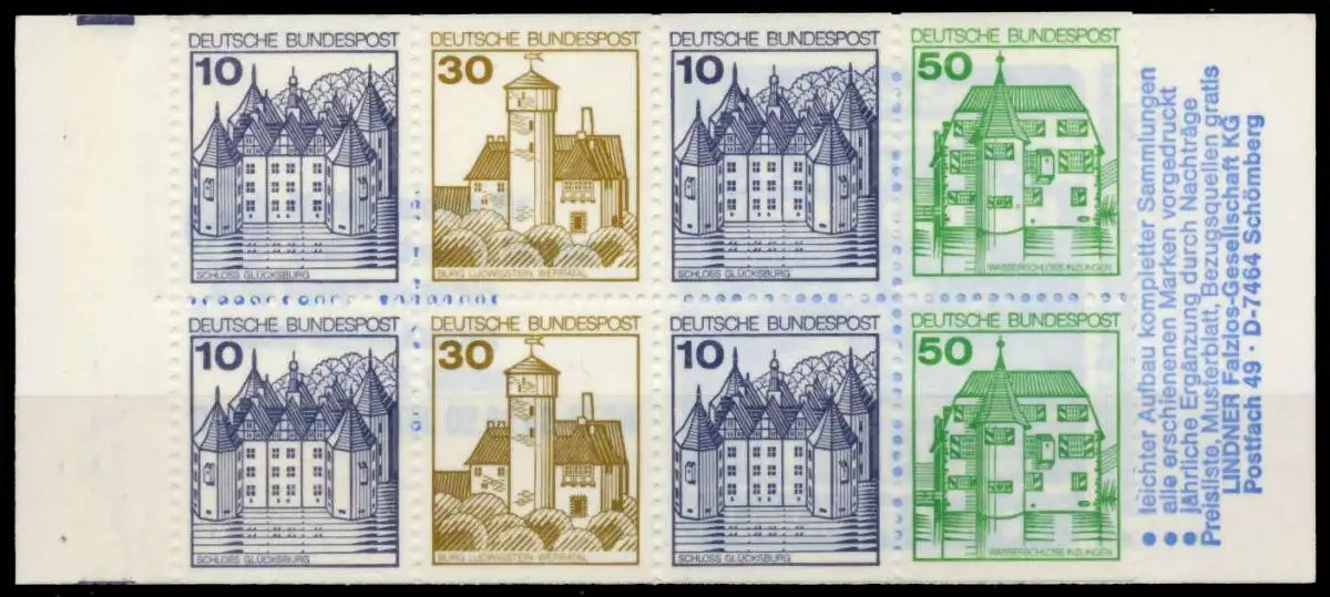 Markenheftchen Nr. 22n, Deckeltype f, Burgen und Schlösser 10 + 30 + 10 + 50