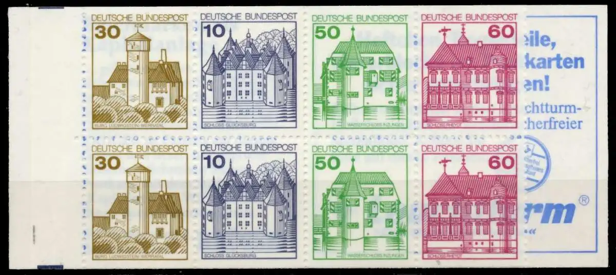 Markenheftchen Nr. 23c, Burgen und Schlösser 30 + 10 + 50 + 60