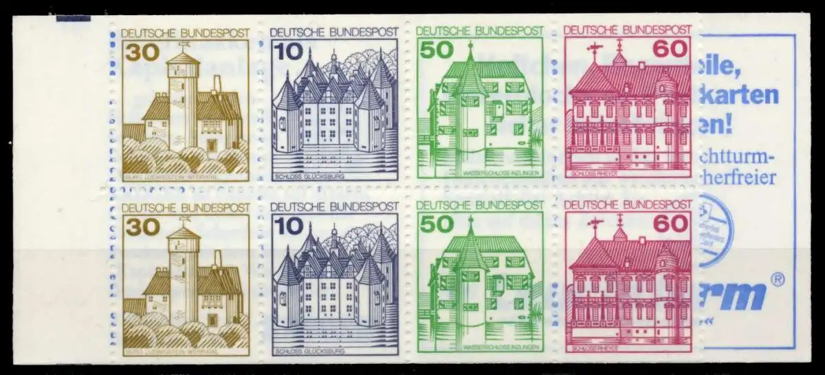 Markenheftchen Nr. 23c, Burgen und Schlösser 30 + 10 + 50 + 60