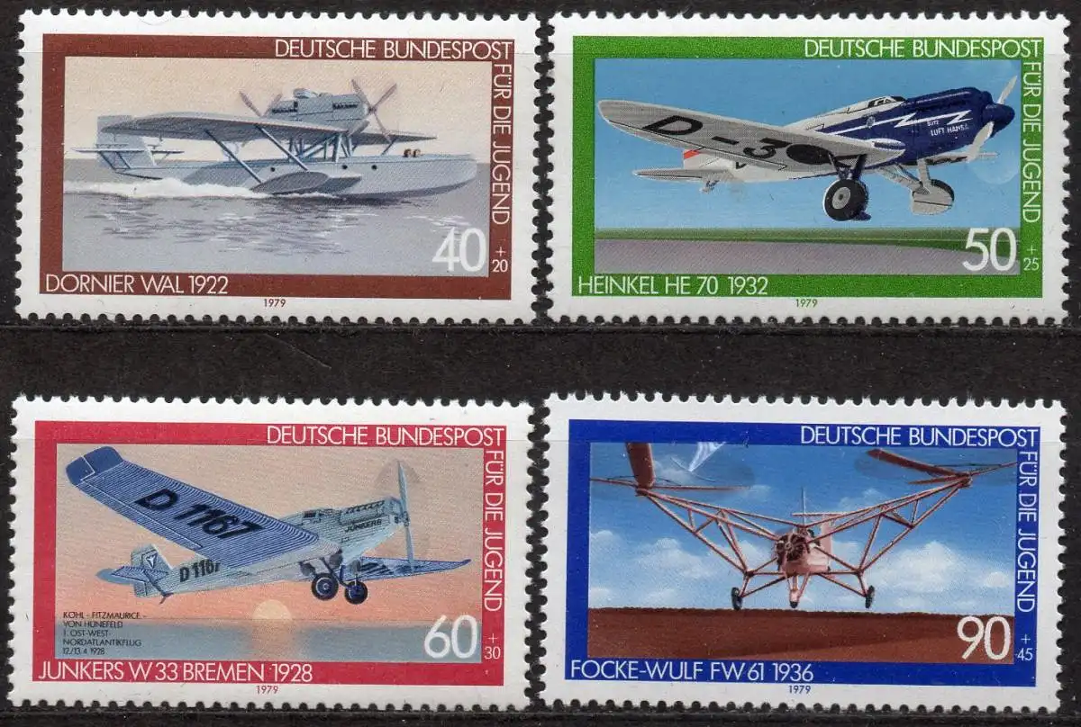 BRD, Mi-Nr. 1005 - 1008 **, kompl., Jugend 1979 - Luftfahrt