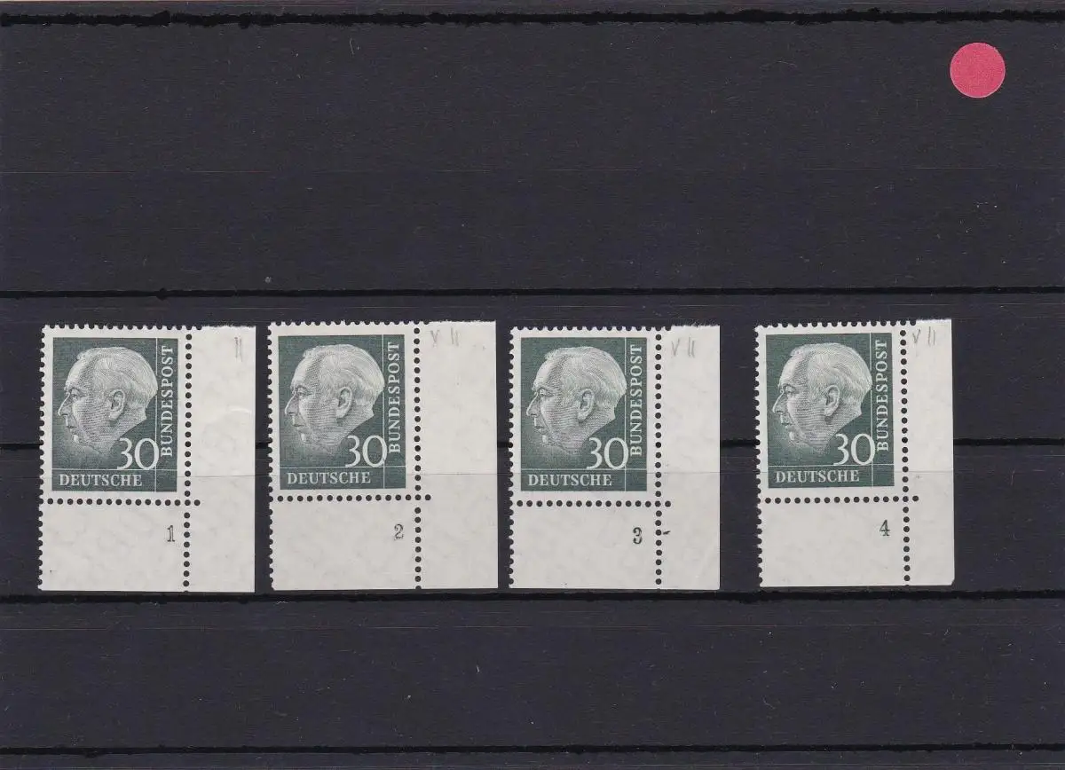 BRD: MiNr. 259FN 1,2,3,4 Heuss mit allen Formnummern, postfrisch