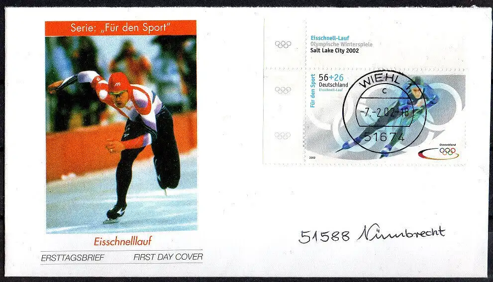 BRD, Michel Nr. 2237 - 2240 gestempelt Wiehl ESST 7.2.02 Eck-Rand oben links.