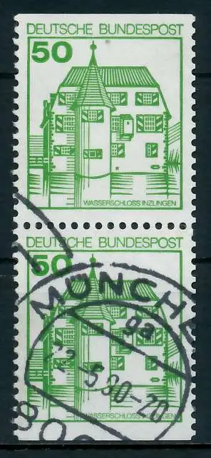 050 Pfg Wert aus der Ausgabe Burgen und Schlösser, oben und unten geschnitten aus Markenheftchen als senkrechtes Paar (MichelNr.: 1202938, 1038C, 1038D)