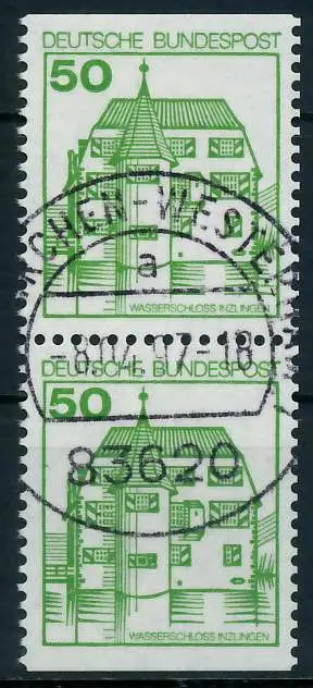 050 Pfg Wert aus der Ausgabe Burgen und Schlösser, oben und unten geschnitten aus Markenheftchen als senkrechtes Paar (MichelNr.: 1202938, 1038C, 1038D)