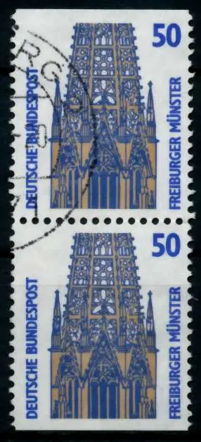 050 Pfg Wert aus der Ausgabe Sehenswürdigkeiten senkrechtes Paar oben und unten geschnitten aus Markenheftchen (MichelNr.: 1232340, 1340C, 1340D)