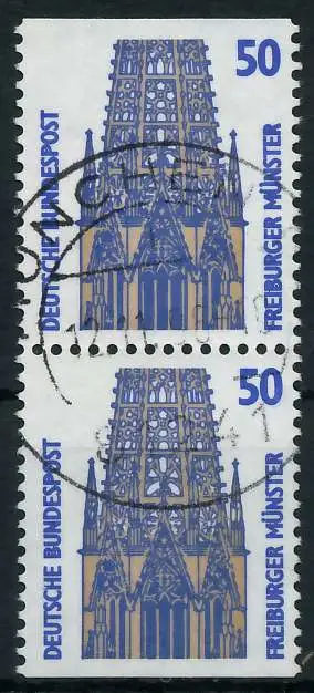 050 Pfg Wert aus der Ausgabe Sehenswürdigkeiten senkrechtes Paar oben und unten geschnitten aus Markenheftchen (MichelNr.: 1232340, 1340C, 1340D)