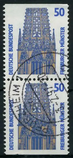 050 Pfg Wert aus der Ausgabe Sehenswürdigkeiten senkrechtes Paar oben und unten geschnitten aus Markenheftchen (MichelNr.: 1232340, 1340C, 1340D)