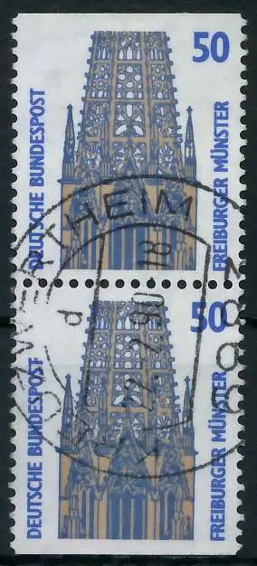 050 Pfg Wert aus der Ausgabe Sehenswürdigkeiten senkrechtes Paar oben und unten geschnitten aus Markenheftchen (MichelNr.: 1232340, 1340C, 1340D)
