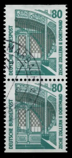 080 Pfg Wert aus der Ausgabe Sehenswürdigkeiten senkrechtes Paar oben und unten geschnitten aus Markenheftchen (MichelNr.: 1232342, 1342C, 1342D)