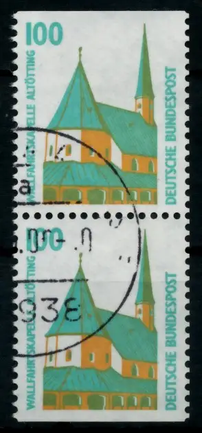 100 Pfg Wert aus der Ausgabe Sehenswürdigkeiten senkrechtes Paar oben und unten geschnitten aus Markenheftchen (MichelNr.: 1242406, 1406C, 1406D)